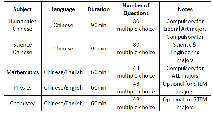 *Applicants applying for the Bachelor’s program in Chinese Language who are able to provide a valid HSK Level 4 score report may be exempted from taking the Chinese proficiency test for the major.