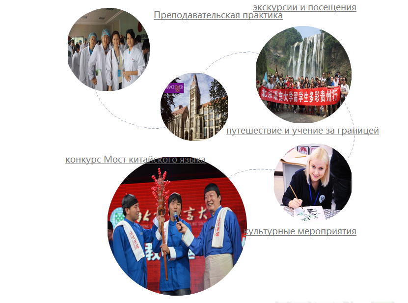 Университет активно поощряет студентов, которые участвуют в конкуре мост китайского языка и получали хорошие результаты на протяжении нескольких лет, и подготовил многих иностранных студентов, которые стали звездами и известны во всей стране. Университет сочетает учение китайскому языку и культурного преподавания совместно с практикой, таким образом заставляет студентов самим глубокая воспринимать китайскую культуру и искусство как: чаепитие, каллиграфия, живопись и тайцзицюань. Организует студентов вести исследование и практиковать в различных провинциях, таким образом студенты могут поглубже узнать китайское общество и культуру и понимать развитие современного Китая. В зимние и летние каникулы студенты могут участвовать в экскурсионных программах за границу и поехать в третью страну проводить исследование, кроме стандартной преподавательской деятельности, студенты могут участвовать в культурном исследование и глубже узнать культуру других стран. Взаимодействовать с телевизионными станциями, газетами и журналами, международными выставками и школами, чтобы создавать возможности практики для студентов в сфере преподавания, информатики, медиатора, ведения программ, перевода, редактора, секретаря, экскурсовода и так далее. Университет создал специальный сайт и отправлял информации о приеме на работу, создал центр руководство занятостью для китайских и иностранных студентов, чтобы оказывать помощи иностранным студентам, которые хотят найти работу в Китае.