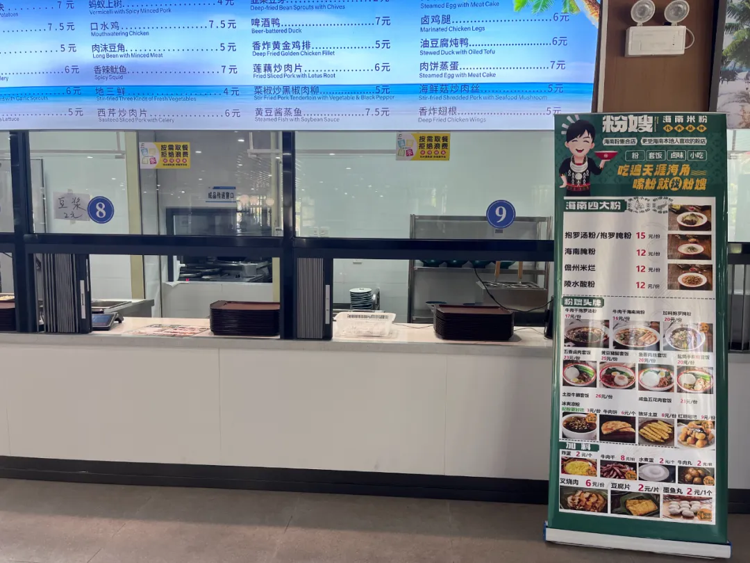 Вторая столовая расположена во второй жилой зоне, а на первом этаже столовой оборудован общественный ресторан, гамбургеры, фруктовая рыбалка и специальные хайнаньские киоски с рисовой лапшой; Этнический колорит (ланьчжоуский рамен) – это халяльный киоск.