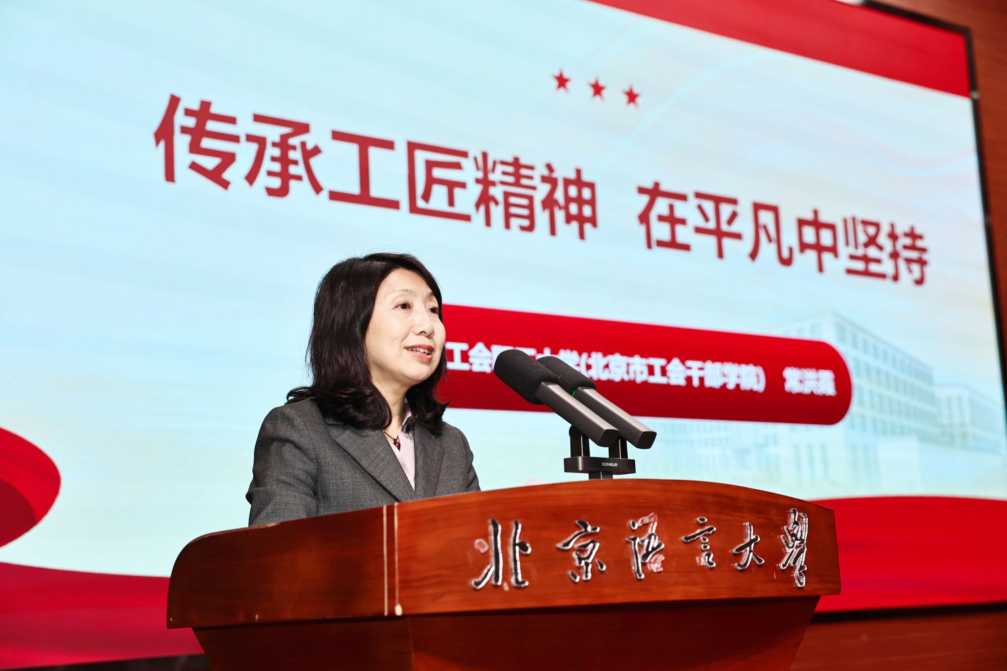 ac米兰app官方入口12月5日电(通讯员 马源 董晴柔 摄影 魏达 李倩)为深入阐释中国道路的理论逻辑、历史逻辑与实践逻辑,进一步推动“大思政课”建设走深走实、走向育人实效,12月3日,学校党委宣传部、党委组织部与马克思主义学院联合举办“中国道路”大讲堂暨“新时代劳模公开课”。本次活动特邀全国劳动模范、党的二十大代表、全国五一劳动奖章获得者、北京市“示范性”创新工作室领军人、北京市总工会职工大学(北京市工会干部学院)常洪霞作题为《传承工匠精神 在平凡中坚持》的专题讲座。讲座由党委常委、组织部部长,马克思主义学院党总支书记、院长张健主持。