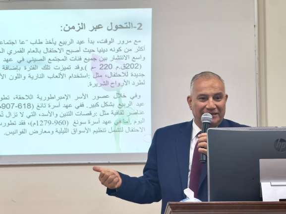 之后,苏伊士运河大学孔子学院埃方院长哈桑·拉杰布教授为埃及荷鲁斯大学学生带来了一场主题为《春节的发展历史》的精彩讲座。他以生动有趣的方式讲述了春节的由来,结合丰富的故事和图像,极大地激发了学生们的学习兴趣,增进了学生对于中国文化的了解。