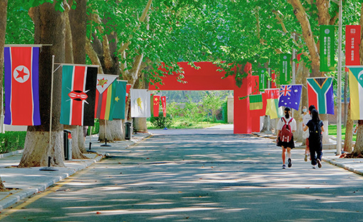 北京语言大学是我国中外语言教育和中外人文交流的重要窗口。2023年8月以来,格鲁吉亚总理、塔吉克斯坦共和国议长、哈萨克斯坦总统、吉尔吉斯共和国总统、厄瓜多尔共和国总统、乌兹别克斯坦共和国总统、法国外长、泰王国枢密院大臣等国际政要以及俄罗斯、日本、法国等35个国家的大使先后到访,增强了学校在国际社会的影响力,助力国家开展“二轨外交”。2024年7月,国家主席习近平和哈萨克斯坦总统托卡耶夫共同见证了我校哈萨克斯坦分校揭牌仪式。学校是国内高校中最早在国外设立分校的大学,目前设有泰国曼谷学院、日本东京分校、哈萨克斯坦分校、沙特诺拉公主大学教学中心。学校是最早建设孔子学院的高校之一,也是累计建有孔子学院(孔子课堂)最多的高校(29所),办学成效突出,多次荣获“孔子学院先进中方合作院校”等荣誉称号。学校与世界81个国家和地区的527所高校及教育机构建立了合作交流关系,形成了全方位、多领域、深层次、富有成效的对外开放办学格局。每年接收140多个国家(地区)12000余名留学生来校学习,近百名外籍教师在校任教,接待外宾1500余人次,五洲学子同堂砥砺,多元文化碰撞交融,打造了“世界文化节”等具有广泛影响的品牌校园活动,形成了独特的国际化校园环境。学校每年派出200余名教师出国任教,1000余名学生出国交流学习。学校积极服务中外人文交流,三次承办文明交流互鉴对话会和世界汉学家大会,建有37个世界汉学家理事会,21个汉学中心海外分中心。获批成为“中阿高校10+10合作计划”中“青年成才”领域牵头单位。建有秘鲁中国研究院、尼泊尔中国研究院、拉美和加勒比国家共同体中国研究院、保加利亚中国研究院等4所海外中国研究院。